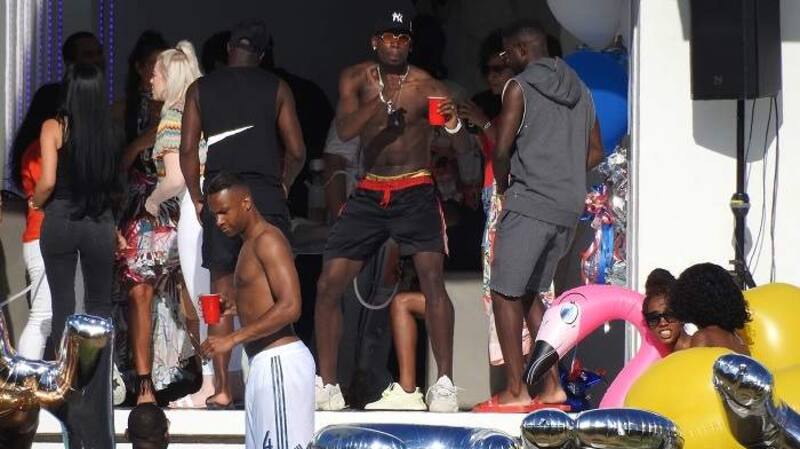 Paul Pogba, Adil Rami y Marouane Fellaini fueron algunos de los jugadores invitados a la fiesta que se realizó en una lujosa mansión en Hollywood.