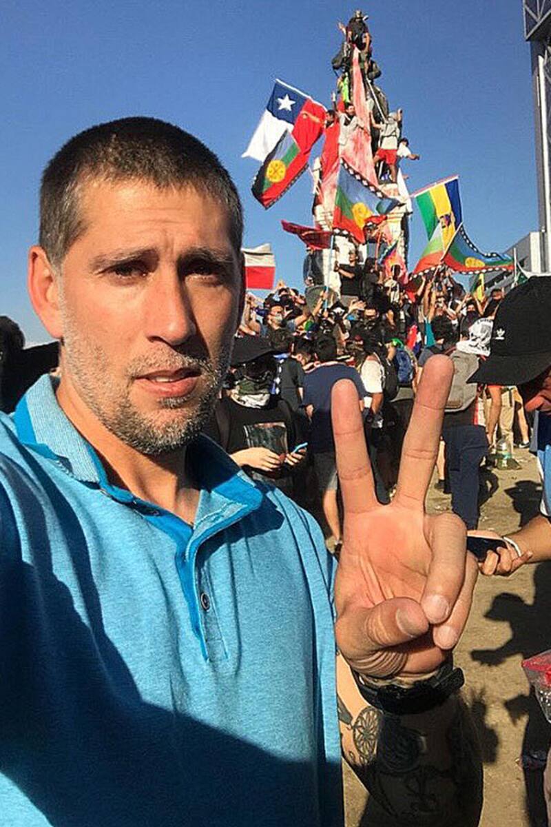 El ex delantero de la "U" se ha convertido en parte del inventario de las marchas de Plaza Italia, ya que tras su trabajo pasa a manifestarse.