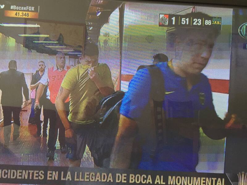 Carlos Tévez resultó el más afectado entre los jugadores de Boca Juniors, luego de que la policía lanzara gas pimienta cerca del bus que los trasladaba al estadio Monumental, para disputar la segunda final de la Copa Libertadores ante River Plate.