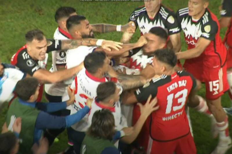 La polémica comenzó a los 2 minutos del segundo tiempo, cuando el defensor de Nacional, Leandro Lozano, cometió un claro foul contra Rodrigo Aliendro de River Plate, lo que generó la molestia de los jugadores del equipo argentino, que comenzaron a empujar con los uruguayos.