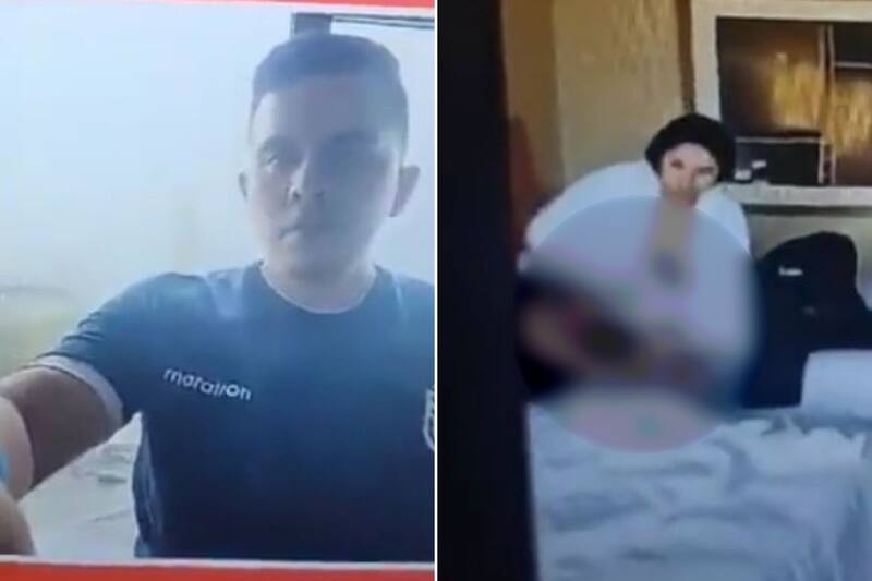 En el apuro, el hombre metió mal el dedo y cambió a la cámara posterior, apareciendo en pantalla una mujer casi totalmente desnuda, solo con una toalla, en el cuarto del hotel.
