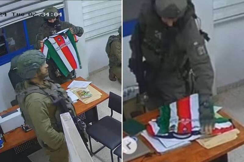 Entre lo confiscado había varias camisetas y otras indumentarias que el club chileno de fútbol Palestino había regalado al centro juvenil de refugiados.