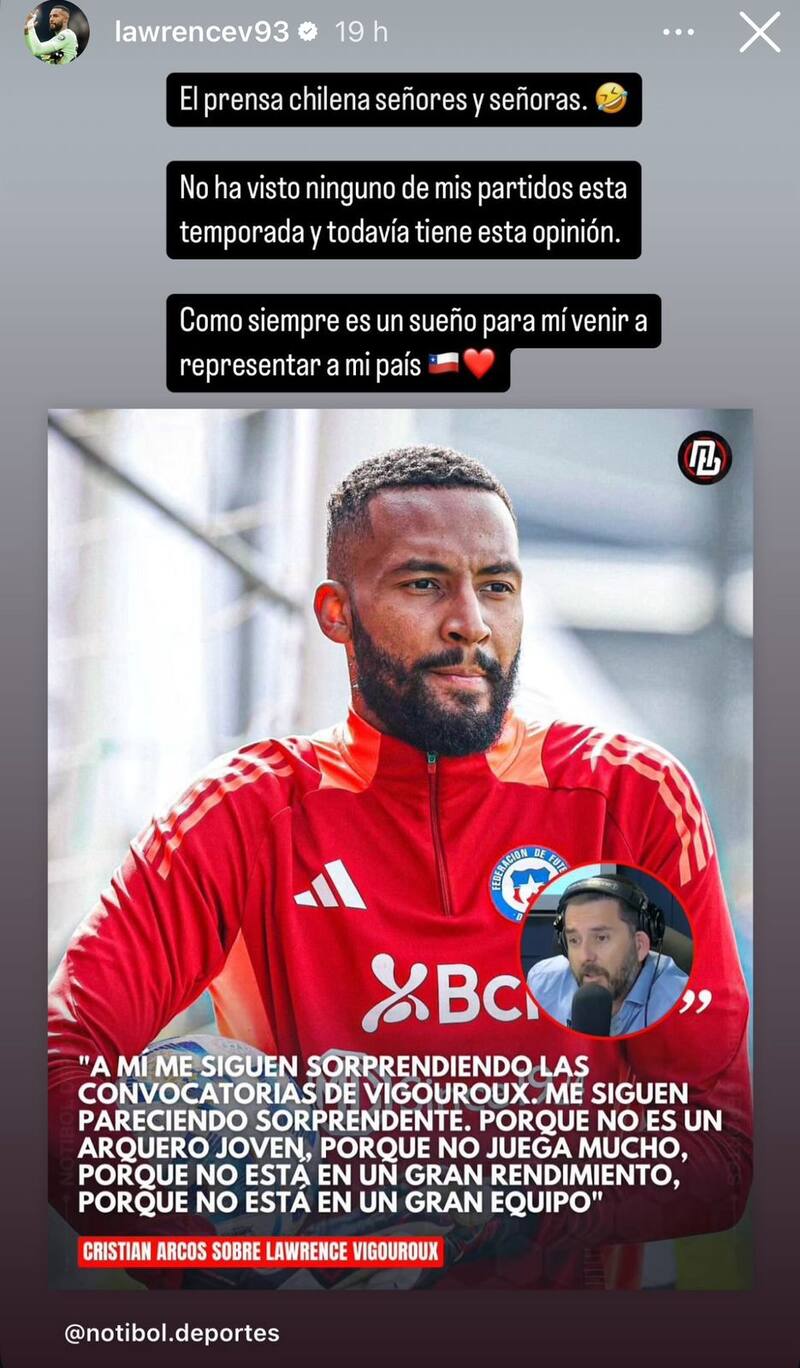 “Me siguen sorprendiendo las convocatorias de Vigouroux porque no es un arquero joven, no juega mucho, no está en un gran rendimiento y no está en un gran equipo”, fue la frase del comunicador que el propio portero compartió en la mencionada plataforma virtual.