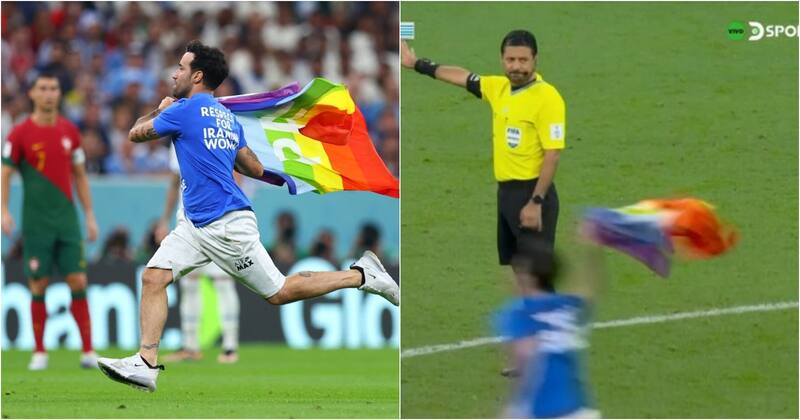 Durante la jornada de este lunes un tenso momento se llevó a cabo durante el duelo entre Portugal y Uruguay luego de que un hincha ingresara a la cancha del estadio Lusail con la bandera LGBTQ+ y otras consignas en Qatar 2022.