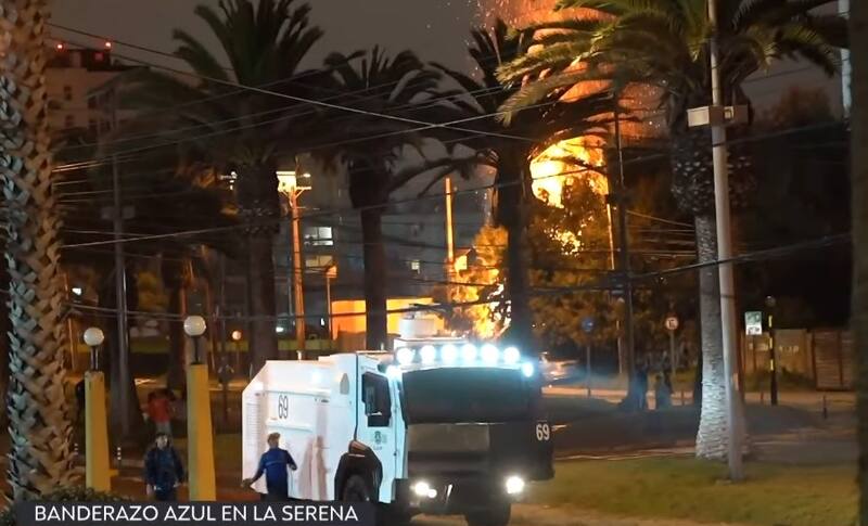 Un banderazo de los hinchas de la Universidad de Chile terminó en un enorme incendio en el centro de la ciudad de La Serena.