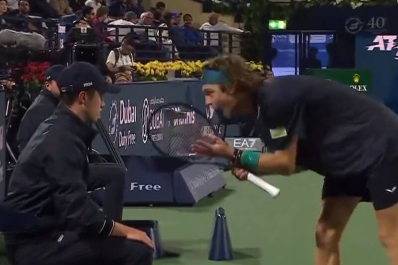 Un episodio desastroso fue el que se vivió en una de las semifinales del ATP 500 de Dubái que terminó con el tenista Andrey Rublev descalificado “por conducta antideportiva”.