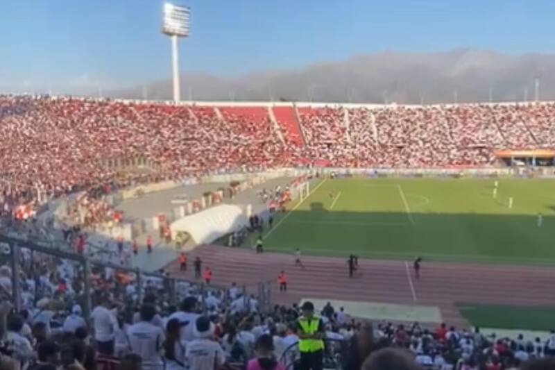 A través de los altavoces anunciaron que se realizaría un minuto de silencio por el duelo nacional, sin embargo de inmediato se escucharon los abucheos desde las tribunas. A pesar de que pusieron música para dar solemnidad, se escuchó clarito como desde las tribunas cantaban: “Piñera…asesino igual que Pinochet”.