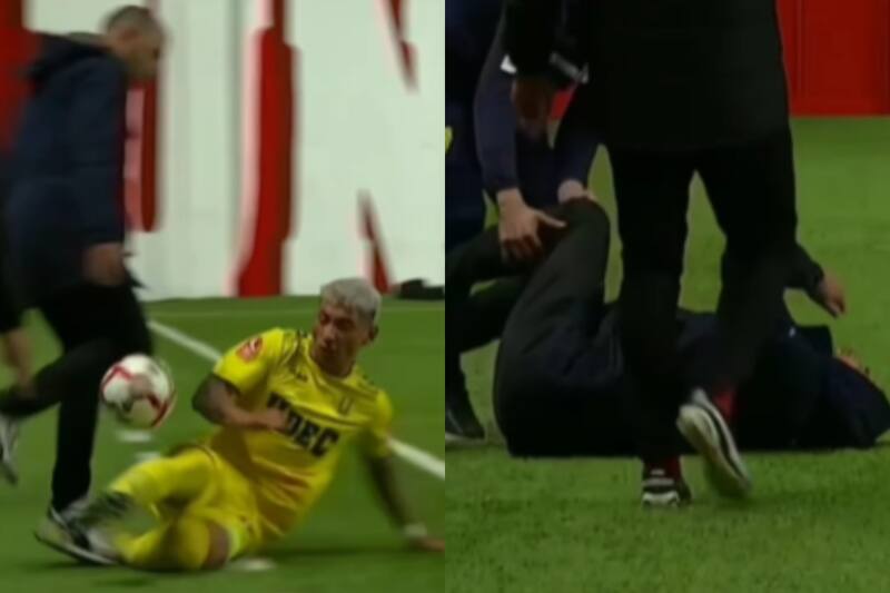 Esta acción que llegó en el segundo tiempo generó un caos en la cancha, mientras que el estratega de Barnechea se mostraba adolorido en el suelo.