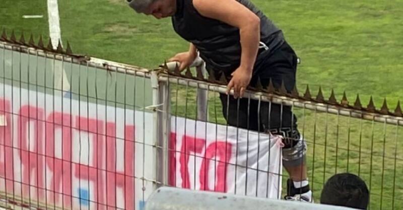 Pero no fue lo único. También se viralizó la imagen de uno de los hinchas que invadió la cancha de San Carlos, por un elemento en especial. Resulta que, mientras trepaba el alambrado, se pudo apreciar que portaba una tobillera electrónica.