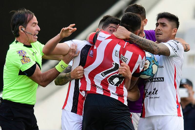 Fue en ese forcejeo cuando varios futbolistas de Patronato -en un momento alcanzaron a ser cinco- vieron al chileno con uno de los suyos entre los brazos y lo invitaron a bailar la del "Guatón Loyola", llenándolo de combos, cortitos y coscachos.