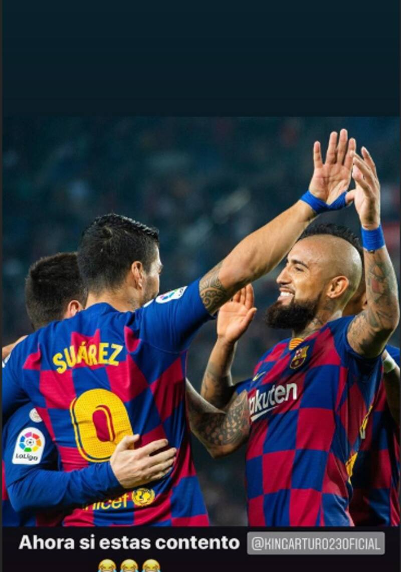 Ante eso, el uruguayo recordó esos dichos y aprovechó de palanquear al ex Colo Colo. "¿Ahora estás contento?", señaló en una historia que subió a su instagram, junto a una imagen de Vidal y unos emoticones sonriendo.