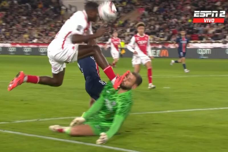 El lateral derecho del Mónaco, Wilfried Singo, se escapaba por la derecha llegando hasta el área del PSG, pero no logra controlar bien el balón, logrando que el arquero del PSG, Gianluigi Donnarumma llegue a cortar la jugada, momento en que el defensor rival salta e impacta en el rostro a su contrincante con sus pies.