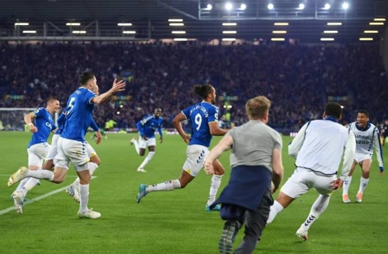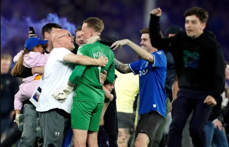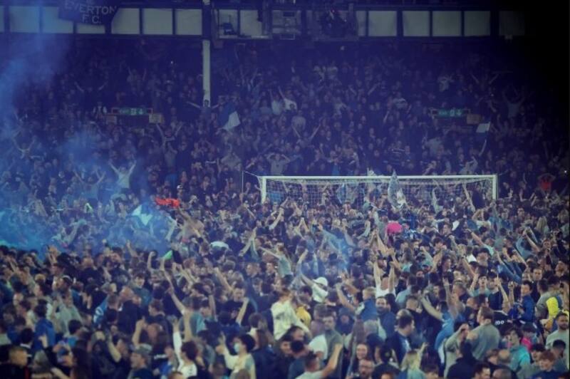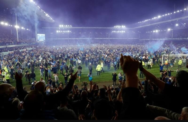La cancha se tiñó de azul luego de que los jugadores celebraran junto a sus fanáticos quienes ingresaron al sector del juego con bengalas, entre otras cosas marcando un épico momento a minutos del fin del juego. Después de siete minutos de agregado el juez dio el fin al partido que finalizó con Everton salvándose del descenso tras triunfar 3-2.