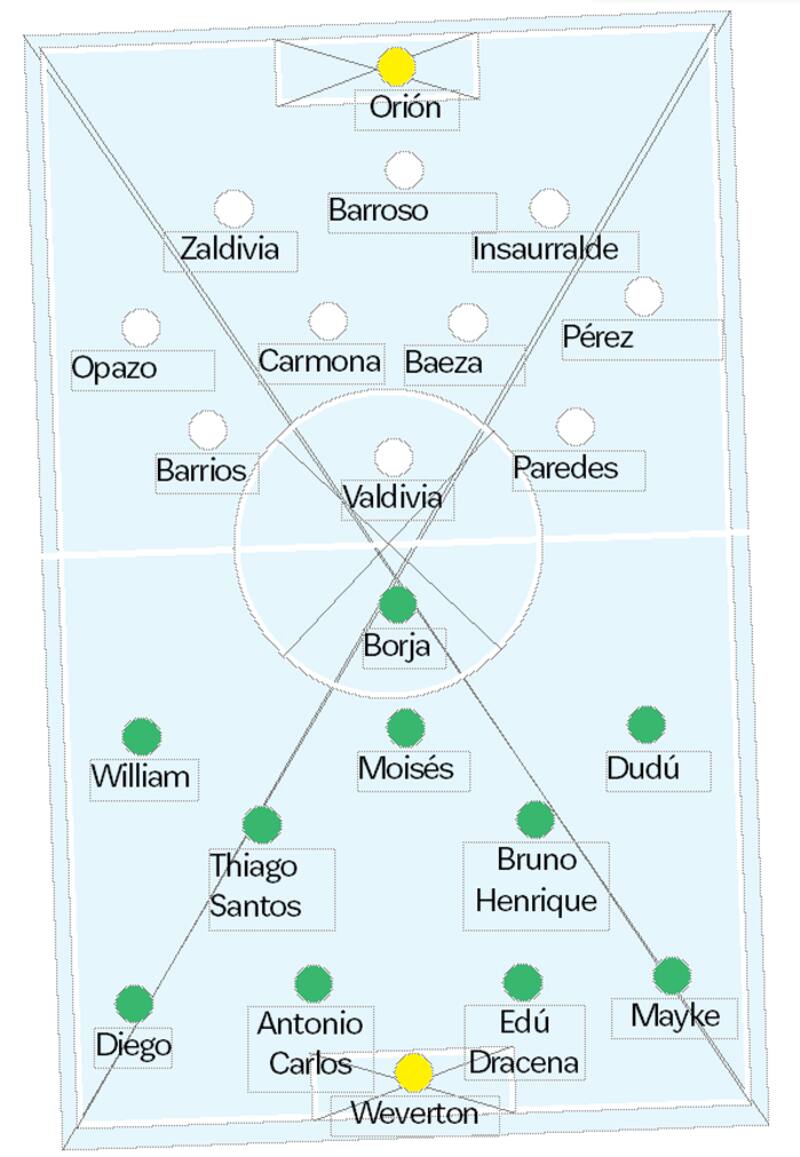 "Nuestro sistema de juego, el volante ofensivo (rival) es marcado por el volante central. Teóricamente, cuando él viene por mi lado, yo lo marco. Si llega por el lado de Thiago, él lo marca. Valdivia es un gran jugador, lo sabemos, pero tenemos que tener preocupación con el equipo entero de ellos. Tenemos que hacer una marcación muy fuerte", reveló el defensor.