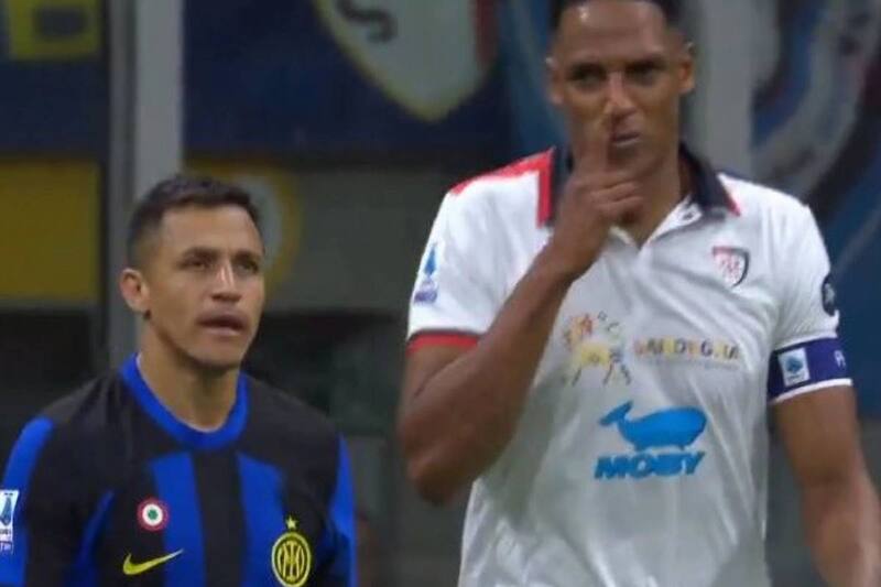 Una tensa situación fue la que protagonizó este domingo Alexis Sánchez en el duelo entre el Inter de Milán y el Cagliari, donde milita el defensor Yerry Mina.