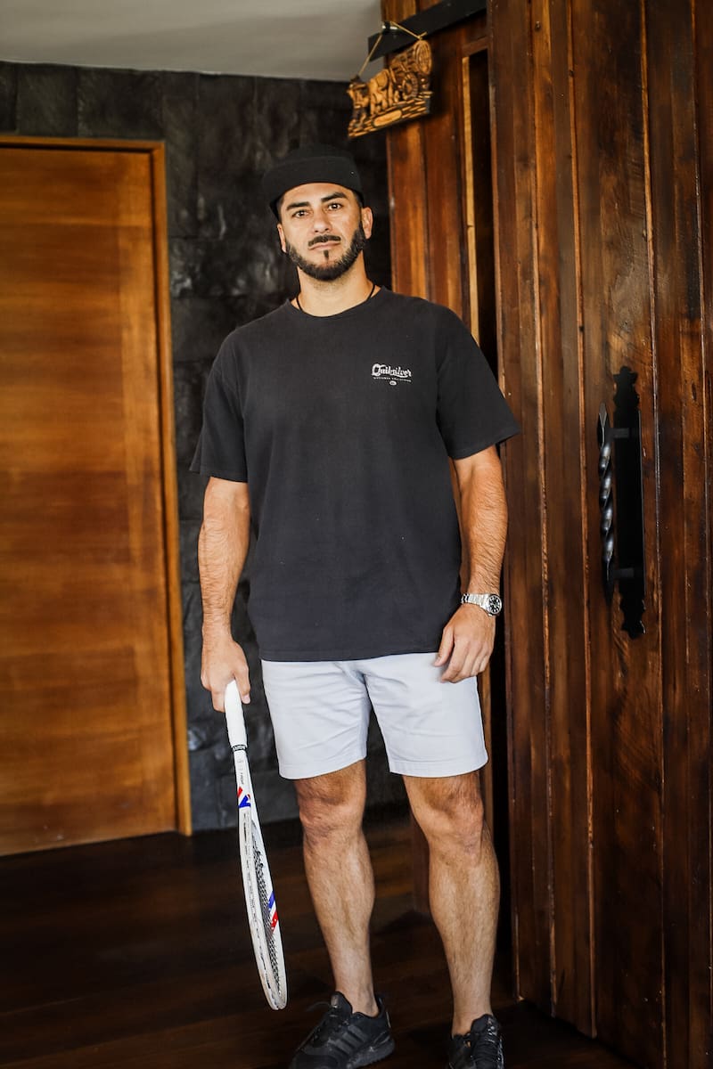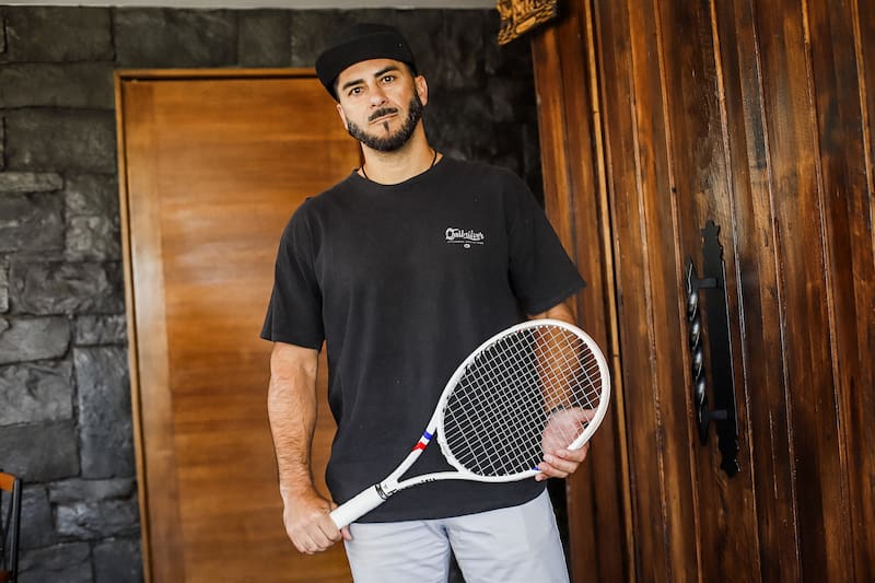 Mi forma de mantenerme físicamente es jugar tenis. Todavía no compito, pero juego bien. Me han invitado a torneos, pero todavía sigo siendo un poquito irresponsable... prefiero huevear a llegar bien al partido, jajajá.