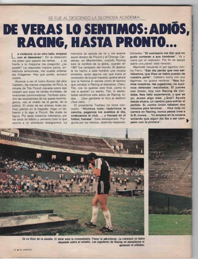 Tras ser el primer equipo argentina en ganar una Intercontinental, en 1983 Racing descendió a Primera B tras una derrota contra Independiente en la última jornada, un balde de agua fría que puso al conjunto albiceleste a pensar seriamente en cómo sacarse el maleficio.