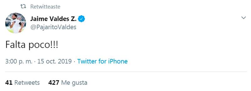 Sin embargo, el misterio siguió cuando Jaime Valdés agarró su celular publicó en su cuenta de twitter: "¡Falta poco!", escribió un minuto después que la cuenta oficial de Colo Colo mostrara la citación frente a los acereros.