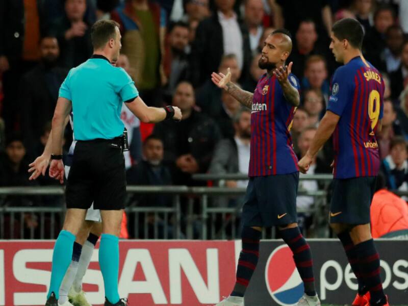 A pesar que el Barcelona logró un espectacular triunfo por 4 a 2 en calidad de visita ante el Tottenham, en el mítico coliseo de Wembley, Arturo Vidal salió molesto de la cancha.