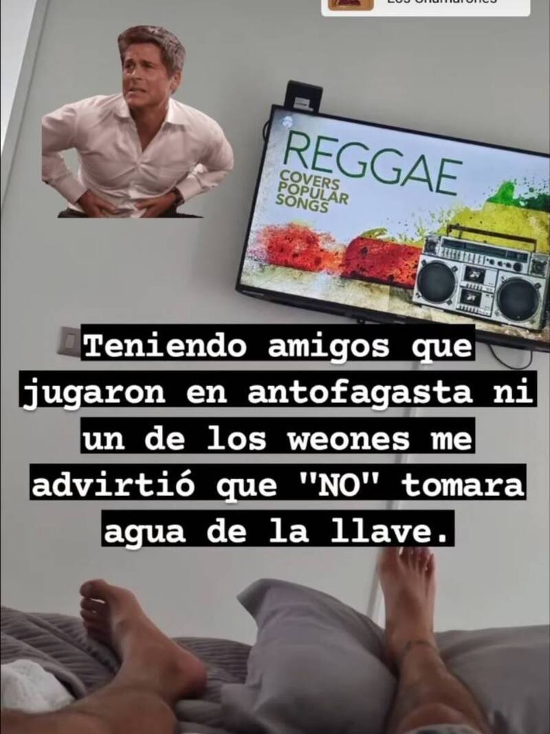 “Teniendo amigos que jugaron en Antofagasta, ni uno de los hue… me advirtió que no tomara agua de la llave”, escribió el ex meta de Unión Española junto a un gif que dejaba en evidencia sus molestias estomacales.