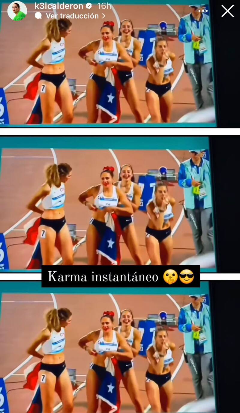 Luego, subió otra historia donde aparecía Isidora realizando gestos de silencio a la cámara tras conseguir la medalla. “Karma instantáneo”, complementó la hija de Raquel Argandoña.
