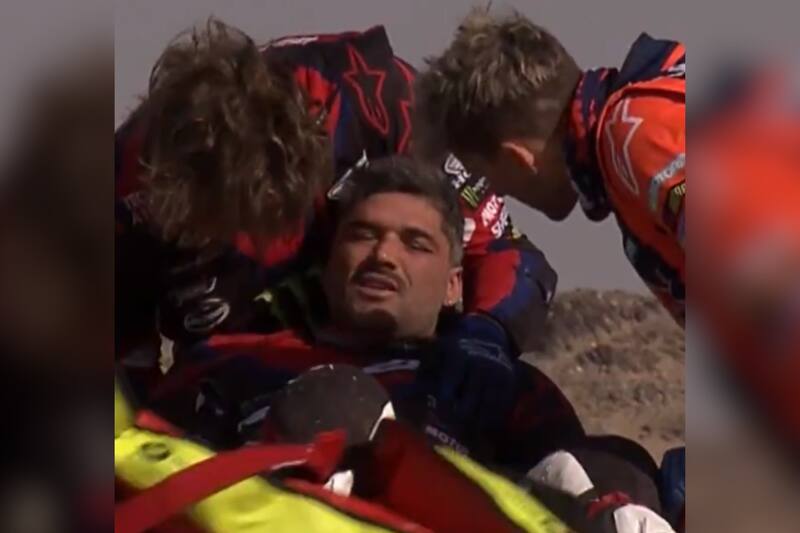 “Apreté todos los botones en la moto, no sabía qué más apretar para que lleguen. Nos llamaron de la organización y empezaron a hacer mil preguntas. Yo les pedía que manden el helicóptero lo más rápido posible y se habrán demorado unos 12 minutos”, agregó el piloto argentino.