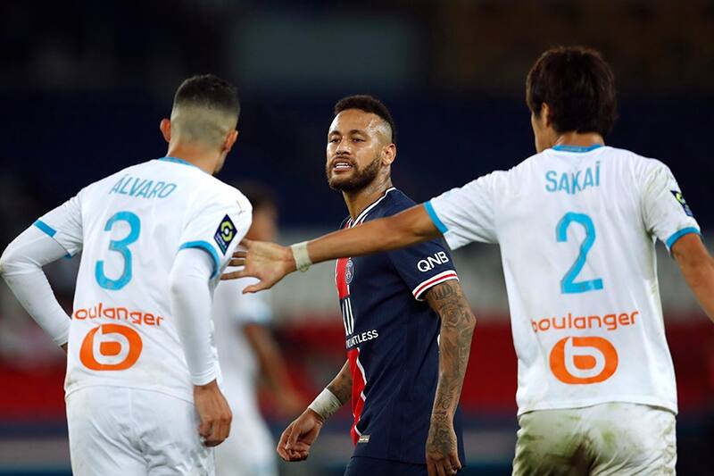El partido entre el PSG y el Marsella terminó con cinco jugadores expulsados, entre ellos Neymar, quien dio un ligero golpe en la parte trasera de la cabeza a González. Por ese acto, el brasileño fue suspendido en principio dos partidos.