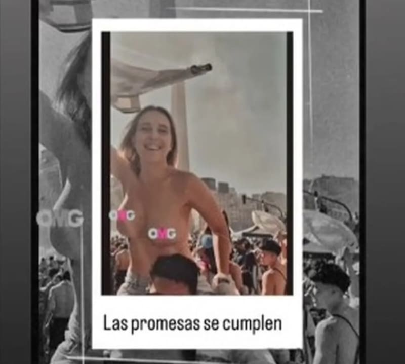 A los pocos días, la profesional se fotografió en las cercanías del Obelisco, donde se sacó la polera y lució su figura frente a la multitud que esperaba al equipo liderado por Lionel Messi. Posteriormente, compartió una foto en su cuenta de Instagram.