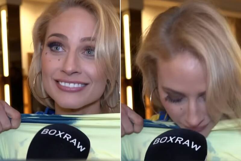 Luego, una entrevista para portal Boxing King Media, fue consultada por el episodio y Ebanie no encontró mejor respuesta que levantarse la camiseta y exhibir nuevamente su sexy ropa interior, con un su cuenta de OnlyFans escrita en su vientre.