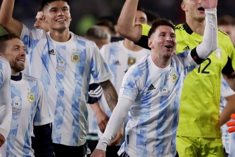 Luego, de vuelta con sus compañeros, el mejor jugador del mundo tuvo tiempo para celebrar y alzar la Copa América 2021.