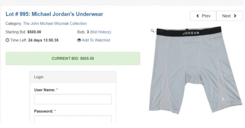 ¿Estará lavado?: Subastan un calzoncillo que usó Michael Jordan
