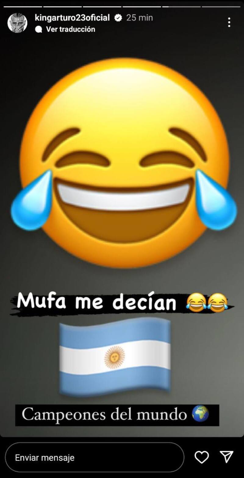 A través de sus historias de Instagram el “King” se refirió a las burlas que recibía durante el mundial siendo tildado de “mufa”, debido a que cada selección que apoyaba públicamente perdía. Algo que varió con el resultado de la albiceleste.