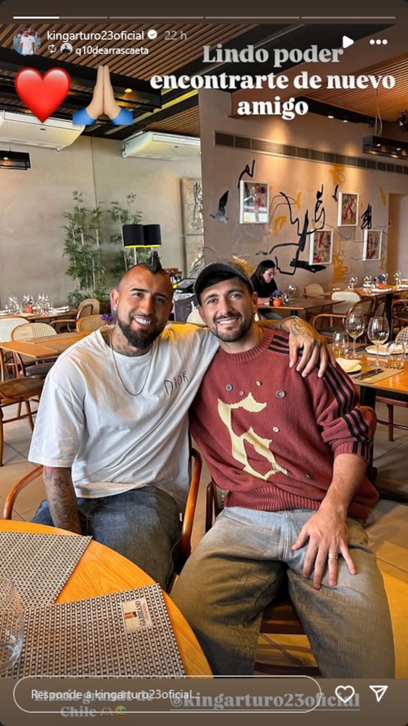Vidal, en cambio, tomó el permiso al pie de la letra. Mientras los hinchas mascaban frustración, el “Rey” apareció en Río de Janeiro junto a su pareja, Sonia Isaza, mostrando en redes sociales su encuentro con el uruguayo Giorgian De Arrascaeta, excompañero en Flamengo.