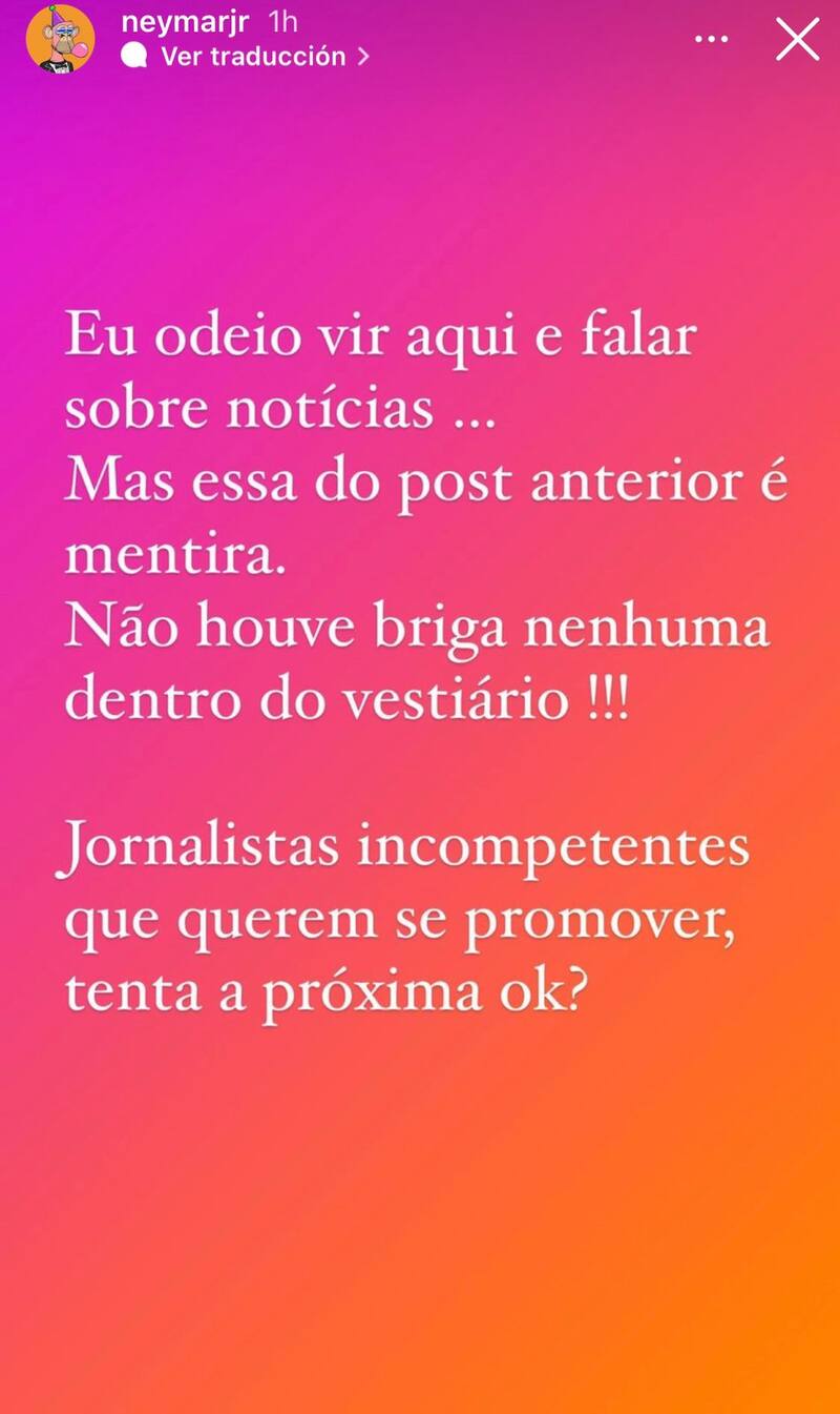 Posteriormente, Neymar compartió otra storie para arrementer contra los medios de comunicación.