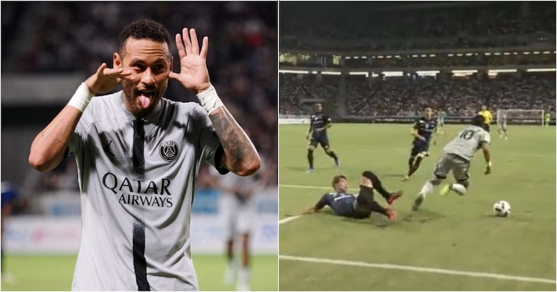 Sucedió en el minuto 30′, cuando el crack nacido en Santos se metió en el área, cerca de la línea de fondo, frenó en seco, y logró esquivar la barrida del rival por unos centímetros. Sin embargo, no conforme con eso, se dejó caer al suelo como si el defensa japonés lo hubiera fulminado con una patada.