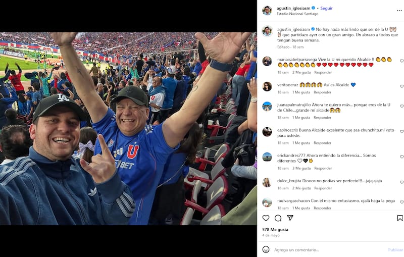 Y ahora el alcalde Agustín Iglesias quedó en el centro de la controversia por una foto que lo muestra alentando a la U junto a su padre en el Estadio Nacional.