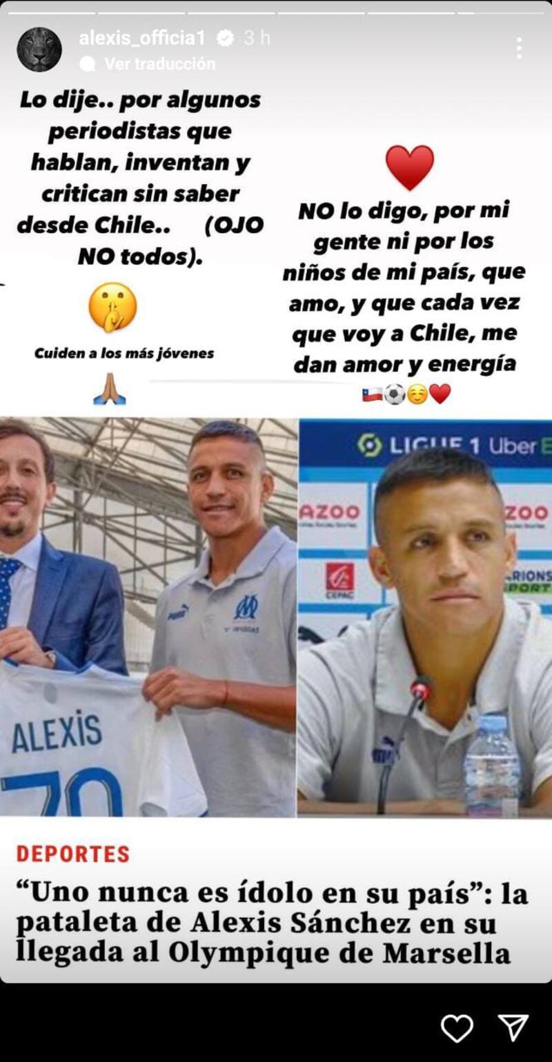 Tras la polémica, Alexis Sánchez reaccionó al tema aclarando en sus redes sociales a qué se refería compartiendo una nota de La Cuarta.