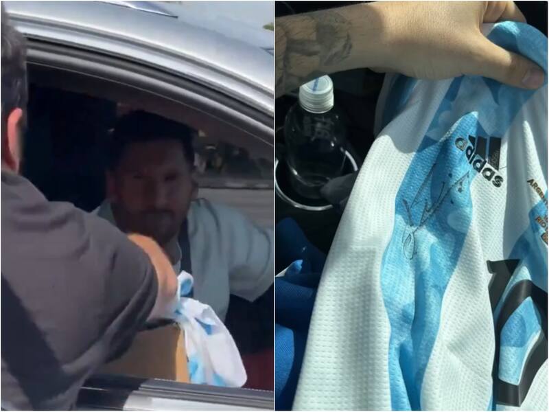 Messi ya es bien conocido por tener gestos amables con sus hinchas. Y esta vez no fue la excepción: el jugador bajó su ventana y recibió la polera que el fanático de lanzó y la autografió, antes de que el semáforo cambiara a verde.