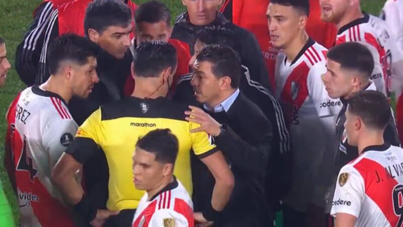 Tras el pitazo final que condenó a River Plate, jugadores y cuerpo técnico se lanzaron contra el juez nacional para pedirle explicaciones. Gallardo, DT de los millonarios, lo consideró una “injusticia total”.