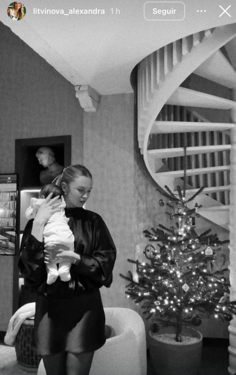De hecho, en la instantánea aparece ella con la guagua en brazo, y con un iluminado árbol de Navidad de fondo.