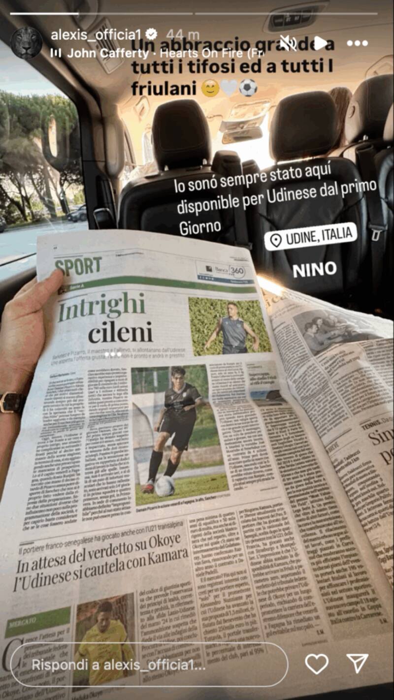 Lo que, curiosamente, rivaliza con la publicación del tocopillano del pasado fin de semana. “Siempre he estado disponible para el Udinese desde el primer día”, hizo saber en su perfil de Instagram, en respuesta a una noticia del periódico Il Messaggero.