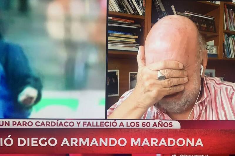El histórico periodista deportivo no pudo con las lagrimas al conocer la muerte del "10".