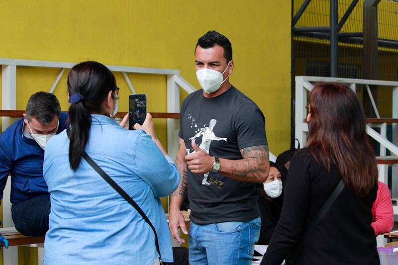 El Pato no fue el único que tuvo la fortuna de sacarse una foto con el ídolo albo, ya que miles de personas -del colegio y desde otros lugares- se trasladaron para formar una fila que era más larga que la de los votantes. "En 2017 también me había sacado una foto con él. Sabía que lo vería, entonces tipo 9:30 me tocó mi turno y pude registrar nuevamente ese momento, aunque no como la otra vez que pudo tomar mi celular y sacar él mismo la foto, pues por el distanciamiento social debió ser más a la rápida", contó Gustavo Téllez (39).