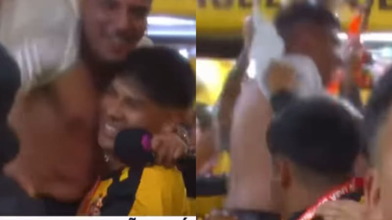 En plena transmisión en vivo del programa Todos Somos Técnicos, su compañero Marcelo Muñoz mostraba las celebraciones cuando, de fondo, se vio al reportero siendo levantado por los jugadores y quedando sin camisa en medio del alboroto, según consignó RedGol.