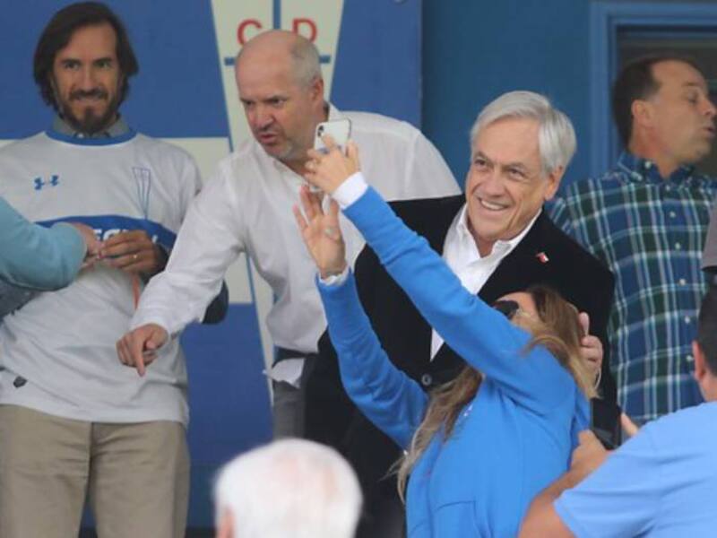 Sonriente, el mandatario accedió a tomarse selfies con los fanáticos cruzados, quienes lo saludaron al ingresar al recinto deportivo ubicado en la comuna de Las Condes.