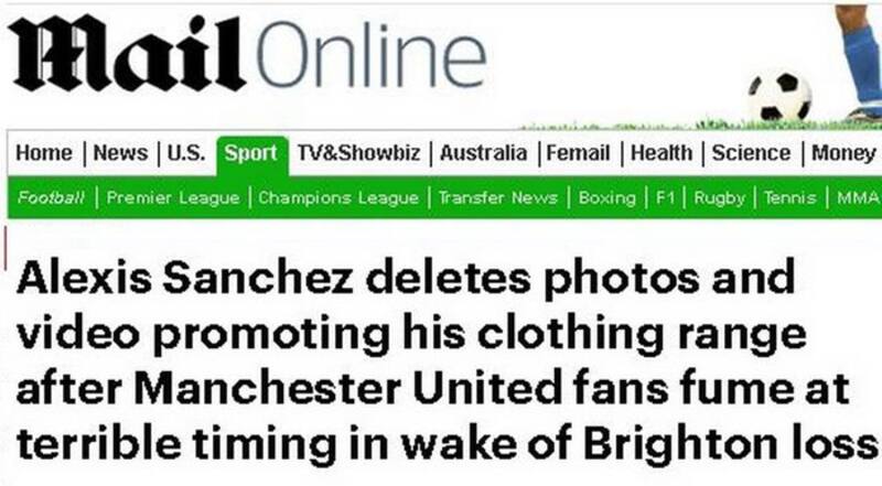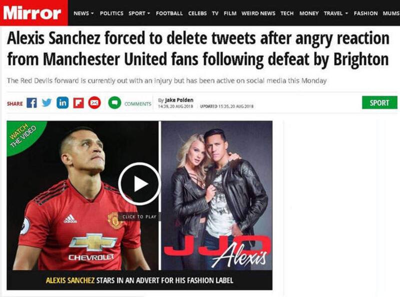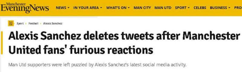 Por ejemplo, The Mirror detalló que "Alexis Sánchez se ve obligado a eliminar los tweets después de la reacción enojada de los fanáticos del Manchester United después de la derrota de Brighton".