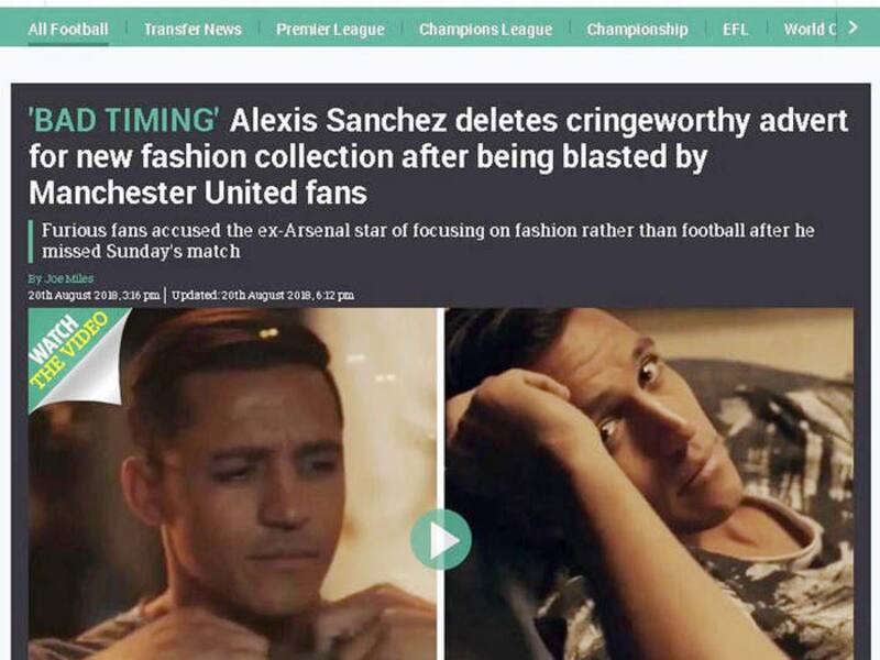 Nada les gustó a los hinchas del Manchester United que Alexis Sánchez presentara públicamente su nueva línea de ropa, justo al día siguiente de no jugar por lesión en la derrota de su equipo.