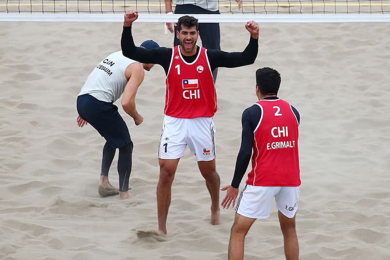Respondiendo al favoritismo que tenían en la previa de los Juegos Panamericanos, los primos Marco y Esteban Grimalt ya tienen asegurada la medalla de plata, tras derrotar a los canadienses Aaron Nusbaum y Michael Platinga por 21-12 y 21-14 en menos de media hora.