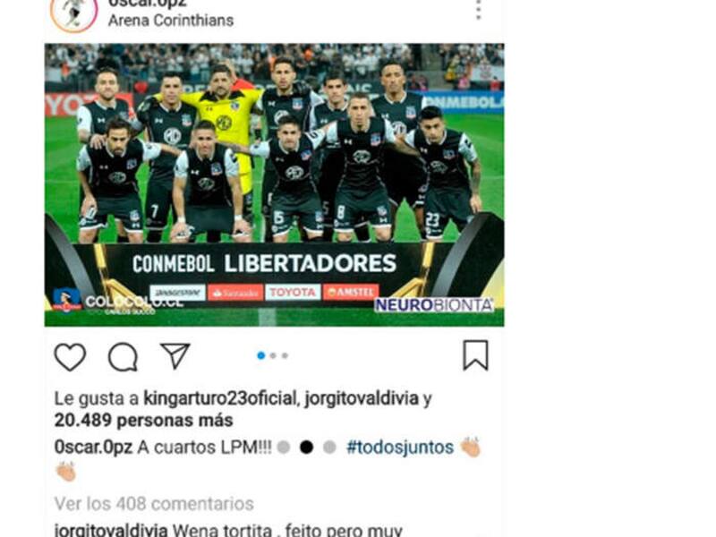 A través de redes sociales, Valdivia compartió una imagen y aprovechó de mostrar la buena onda que se vive al interior del camarín con un divertido mensaje con Óscar "el torta" Opazo.