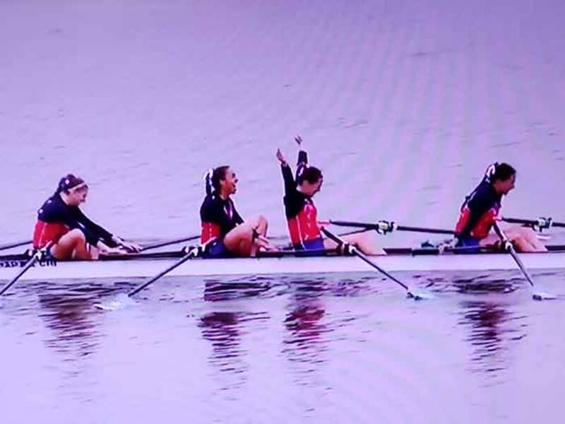 Al rato sería en la disciplina de cuatro remos pesos ligeros femenino, donde Melita Abraham, Antonia Abraham, Soraya Jadue e Isidora Niemeyer obtuvieron la medalla dorada número 11 para el Team Chile. Una de las mellizas Abraham -Melita- superó un problema estomacal para lograr el oro. El podio lo completó Cuba y Estados Unidos.